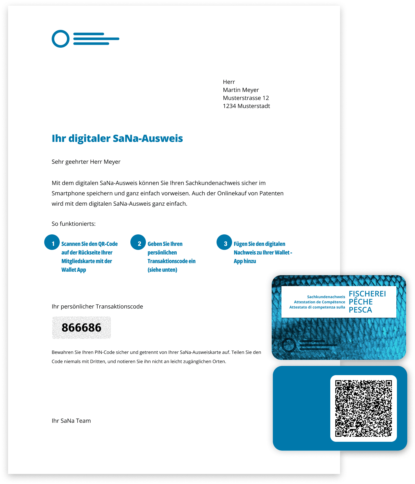 With the QR code on the back, Martin can digitally issue the SANA card to his wallet.